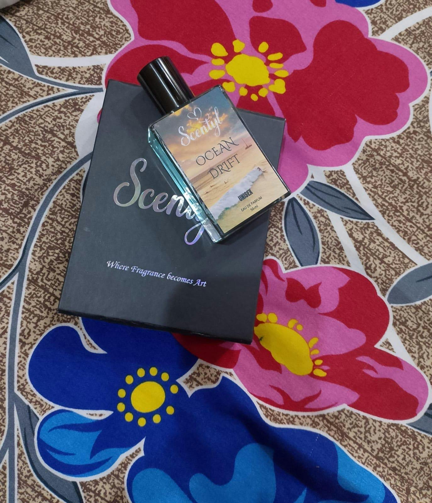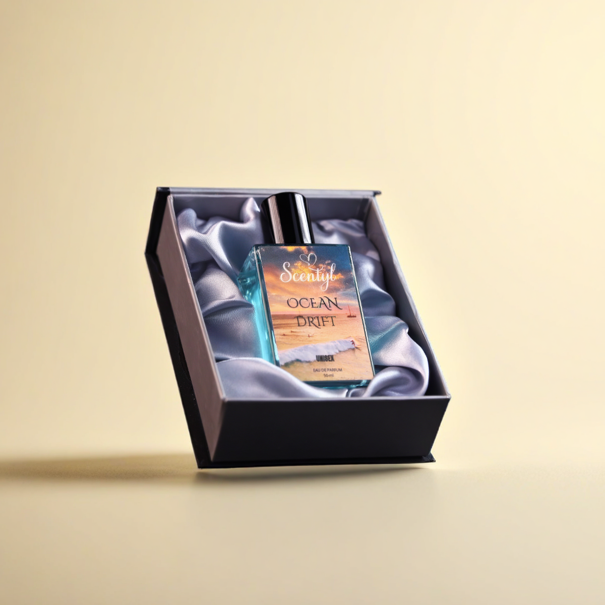Ocean Drift is a crisp and refreshing unisex fragrance that captures the essence of cool sea breeze and coastal freedom. It opens with a splash of green apple and aquatic notes that instantly awaken the senses. The heart unfolds into a blend of soft florals and fresh greens, while the base of musk and cedarwood adds a clean, long-lasting finish. Perfect for everyday wear, Ocean Drift brings a sense of effortless freshness that suits every personality.